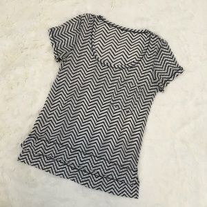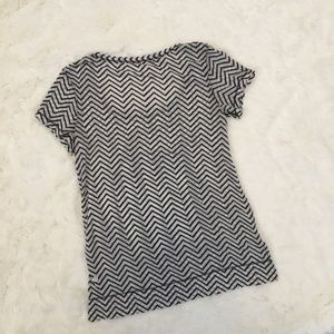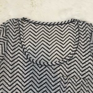 Lululemon gray and white chevron print tee in size 6. Size tag removed. Lightweight, sheer material. A few wears with no stains or flaws.