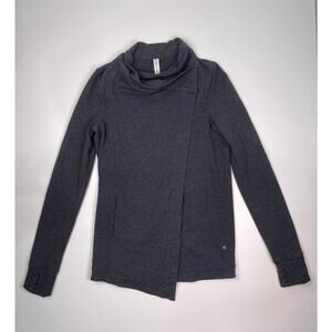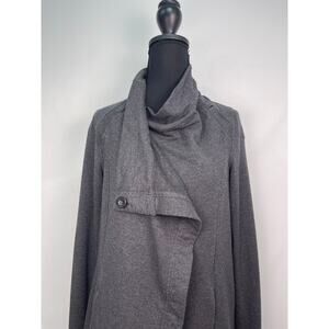 Lululemon wrap cardigan, Lululemon gray cardigan, Lululemon asymmetrical cardigan, Lululemon size 4 cardigan, Lululemon cowl neck sweater, Lululemon cozy wrap jacket