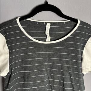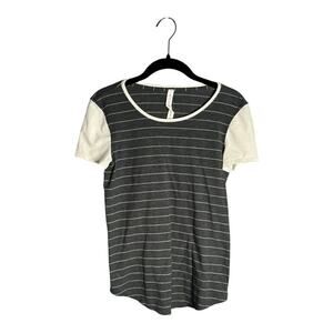 Lululemon Gray and White Striped Short Sleeve Top Round Neckline Size 2