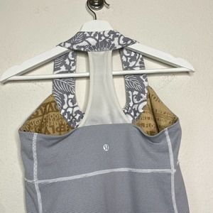 Lululemon Gray and White Wee Stripe Beachy Floral Fossil Top 8