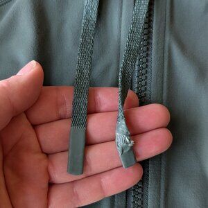 Drawstring hood (the end cap on one of the drawstring is flawed)