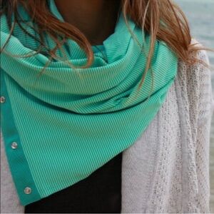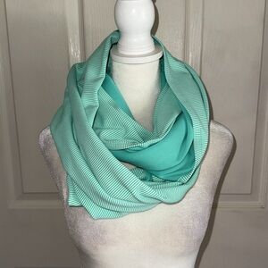 Lululemon green striped Vinyasa scarf. Approximately 55” x 27” opened. Snap front closure. Very good pre owned condition