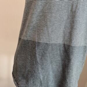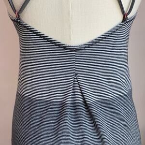 Lululemon loose fitting grey striped tank top with low back & cross straps. Cotton spandex material make it a great top to workout in or wear out.