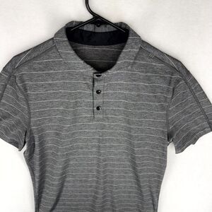 Lululemon Grey and White Striped Short Sleeved Polo Mens Size XS