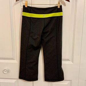 Lululemon Grey Yellow Groove Reversible Crop Stretch Leggings With Pocket Size 4