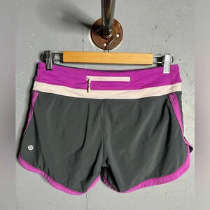 Lululemon Groovy Run Shorts Women 4 Gray Violet Zip Pocket Inner Briefs Wicking