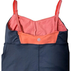 Lululemon Happy Heat Coral & Gray Luxtreme Ruched Strappy Tank Top Size 0-2. Condition is Pre-owned. Shipped with USPS Ground Advantage.