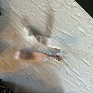 This bundle includes one white thin lululemon head hand (never used), 4 thin animal print scrunchie hair ties (Never used), two creaseless elastic hair ties (pink and white)(never used), and two large scrunchie hair ties (one light burgandy, and the other black with small white and grey hearts) (used only a few times).