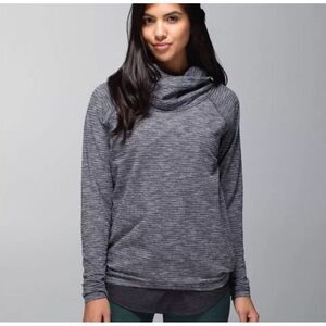 Lululemon Healthy Heart Pullover Women's Coco Pique Black Gray Cowl Neck. Size 6