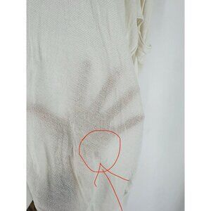 This wrap is in really great condition. It does have an area of light discoloration at the bottom of the left wing wrap. It’s light and may lift with some hydrogen peroxide. There is also a single slightly darker mark on the center back. All extremely minimal. The length approximately 30.5” in the back and the wrap wings are approximately 48”.
