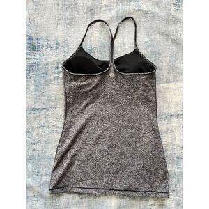 Flow freely through your practice in this skinny-strap tank with built-in support. Slip a layer over top to transition seamlessly to post-sweat coffee dates. Racerback style with light support built in bra. Openings for optional bust padding. Colorway is called Heathered Black. Excellent condition.