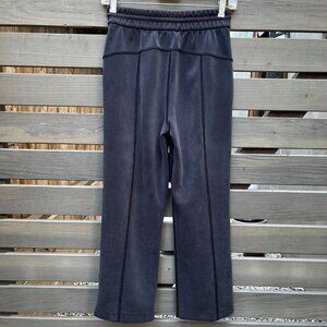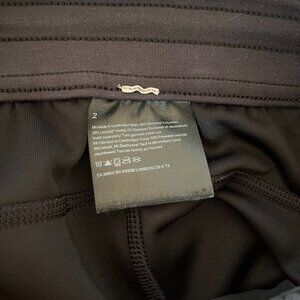 These super soft straight-leg crops have a drawstring/toggle closure and a 24" inseam. There are two side pockets and a hidden card sleeve.The official color is Black, but it is a heathered slightly faded black, not more like a charcoal gray. In excellent condition. Size 2.