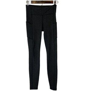 Lululemon Heathered Grey and Black High Rise Side Pockets Zipper Pocket Full Length
