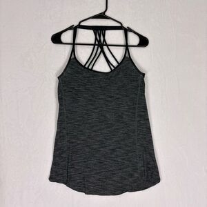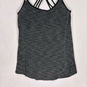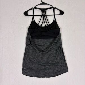 Lululemon Heathered Grey with Black Strappy Back Sports Bra Built In Size 8