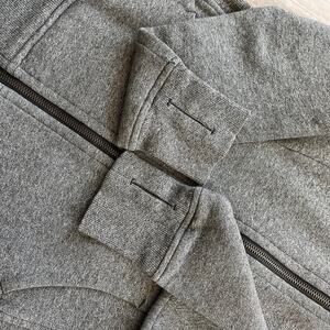 Lululemon Scuba Full-Zip Hoodie in heathered speckled black, women’s size 6. Premium athletic wear featuring a cozy fleece interior, high neckline, and thumbholes for added comfort. Perfect for workouts, athleisure, or everyday layering. Classic Lululemon quality and style.