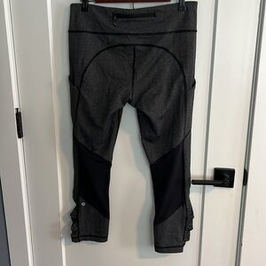Features crop length, back zip pocket, pockets on sides of both legs (deep pockets), interior drawstring
