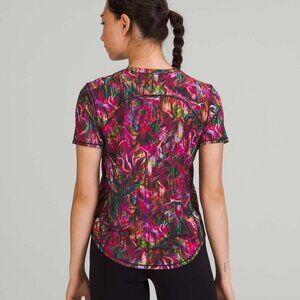 Lululemon High Neck Running and Training T-Shirt Hyper Flow Pink Multi Sz 8 $58