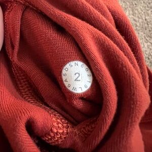 These Lululemon leggings are cropped, I believe they’re the Align crop leggings in “autumn rust” or “cayenne” (perfect for fall!) but I’m not sure. The inseam is 21”. They’re in really great condition, no real pilling in the gusset, just very minor texture to the fabric centralized to that area (see photo). The rest of fabric is in near new condition. They’re a women’s size 2.