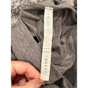 Gray. Inner waistband pocket. Inseam is 25 inches.