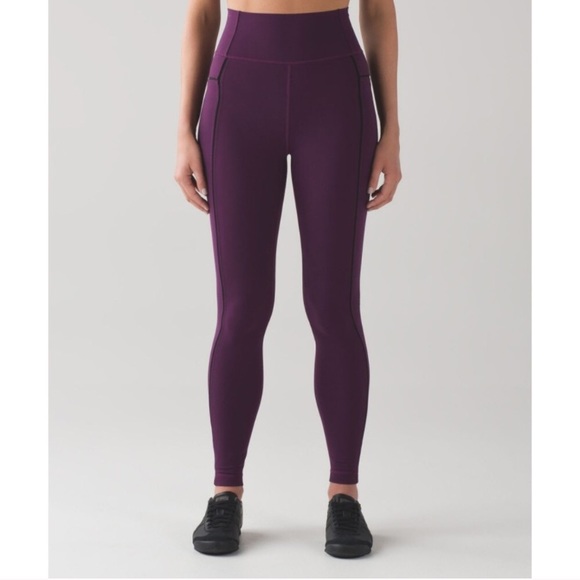 Lululemon "Simple Bare Tight" yoga pants in darkest magenta, size 6. Made of lightweight, super soft Nulu fabric. High rise.