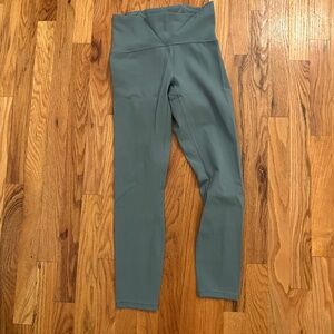 This pair of Lululemon high-rise leggings in a stunning sage green is made with Luxtreme fabric—smooth, supportive, and sweat-wicking for all-day comfort. Designed with sleek seam lines and a hidden waistband pocket for your essentials. Features a unique locker loop detail on the inner waistband and a flattering fit perfect for studio or street.
