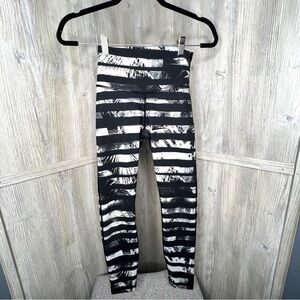 High Times Shady Palms Black and White Print. High Rise Waist Wear Up or Roll Down. Full On Luon. No Size Dot measurements 11” waist laying flat “should”fit size 4. Inseam 26”.