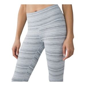 Lululemon High Times Cyber Stripe White Silver Fox Leggings EUC Size 4