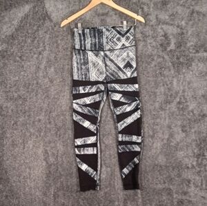 Lululemon High waisted black n white leggings. there in very good condition.. no pilling fading or holes. approx measurements Rise :10" length:26" waist:12" ...