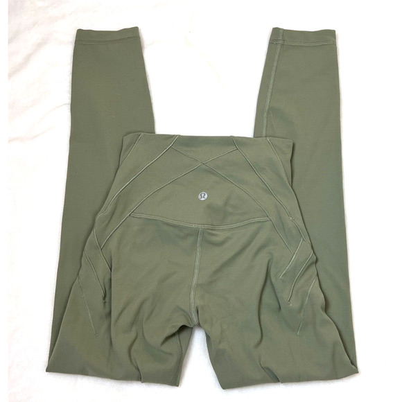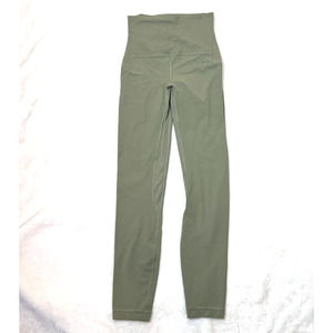 Get ready to experience the perfect blend of comfort and style with these green High-Rise Tights from Lululemon. The elastic waistband and stretchy spandex material ensure a snug fit, while the blended fabric provides the flexibility to move freely. These ankle-length leggings are perfect for gym and training, running, walking, cross training, crossfit, and yoga. Designed for women, these solid pattern leggings feature a skinny leg style and offer compression in the leg area. The pull-on closure makes them easy to wear and the machine washable material ensures they are easy to maintain. Ideal for any athleisure outfit, these Lululemon High-Rise Tights in size 2 are perfect for a classic and designer look.