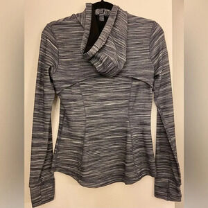Lululemon Hooded Define Jacket Nulu Heathered Black & White Size 8. Excellent pre-owned condition, little to no signs of wear.