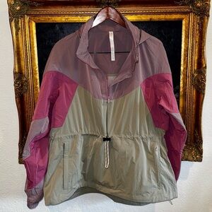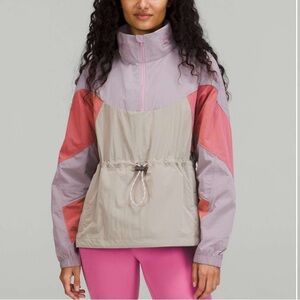 Lululemon Hooded Pink, purple, gray Color-Block Half Zip Wind Breaker Size 12. Cinchable. Please note mark or two, very small, haven’t stain treated.