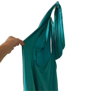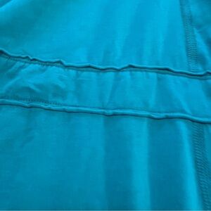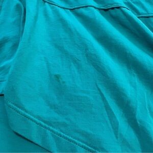 One small stain at front as shown (up close and farther away) in last 2 photos. No tags, please see approximate measurements in photos before purchasing. Super soft and stretchy