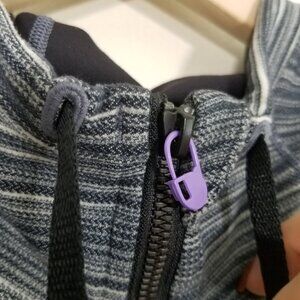 Like new! The only thing missing is the part of the zipper that moves up and down. That’s because the zipper slider has a lock mechanism. The only way I managed to fix it so it could move freely was by using that purple tool shown in the photo. If you remove it, the zipper won’t work.