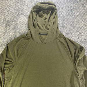 The Lululemon Hoodie Shirt for men in size XL features a solid green color with a crew neck and long sleeves, making it perfect for active occasions such as gym workouts, yoga sessions, or running. Made from a blend of polyester, nylon, and spandex with a knit fabric type, this lightweight and breathable pullover shirt is designed for comfort and moisture-wicking performance. The tagless and hooded design adds to its functionality, while the Better Each Day character reflects a positive message for a better lifestyle. Made in Vietnam under the Lululemon Metal Vent product line.