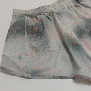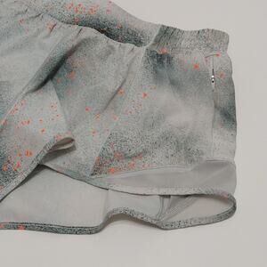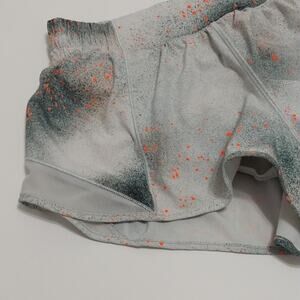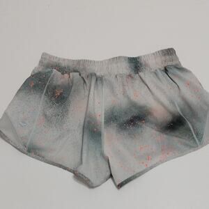 This article worn several times. reflective spray camo in color. low rise. mesh panels. continuous drawcord. swift fabric. lined. lightweight.