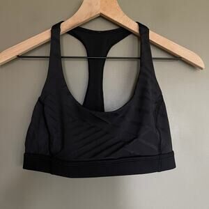 Lululemon Hot Like Agni Bra, Black, Tonal Stripe Print, Size 8, Racerback, Sports Bra, Excellent Condition with No Flaws or Signs of Wear.