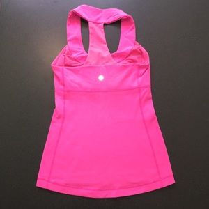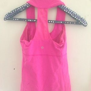 This adorable racer back Lululemon workout top is perfect for yoga, running, or any other sport or physical activity you can think of. There is a built-in bra that you can put padding into if you want. I got this off poshmark not realizing that lululemon run small. The previous owner did'nt wear it, and I don't fit in it, so it's still in great condition. It's a lululemon size 4, so it will fit anyone size XS/S.
