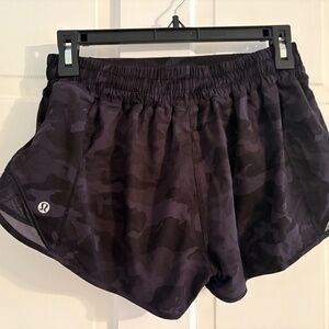 Great condition black camo pattern. Lululemon Hotty Hot low rise lined 2.5 inch shorts.