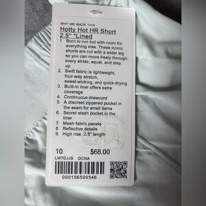 Lululemon Hotty Hot High-Rise Lined Short 2.5" Ocean Air Size 10