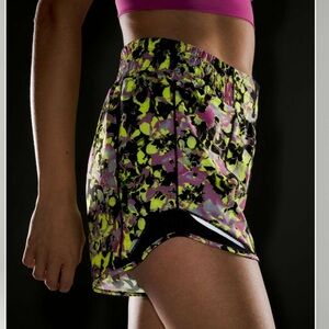 Vibrant women's shorts with a dynamic multicolor pattern. Lightweight and comfortable. Perfect for active wear.