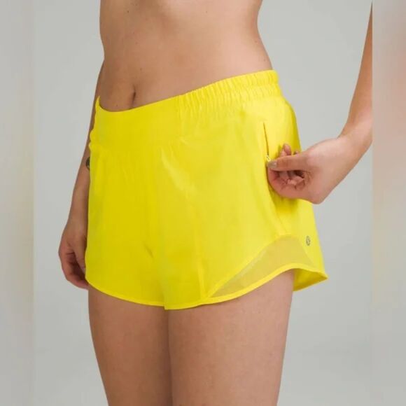 Lululemon Hotty Hot Low Rise Short 4" Lined Sonic Yellow Size 14 NWT