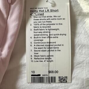 Lululemon Hotty Hot Low-Rise Lined Short 4" Meadowsweet Pink Size 10 NWT