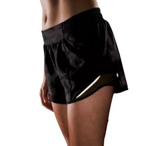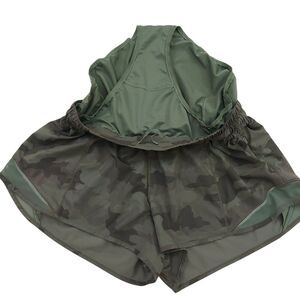 Lululemon Hotty Hot Low-Rise Lined Short 4" Womens 10 Green Camo Running Gym