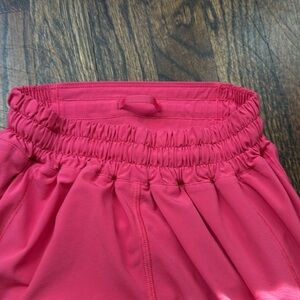 Lululemon Hotty Hot shorts in size 0. There is a stain on the front right side of the shorts- it may come out with wash. But not very noticeable. Label with name was affixed to the inside of the shorts and you can still see a little bit left of the label. But otherwise these are great!! See photos for more details.
