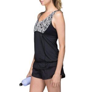 Lululemon Hustle & Bustle TankBlack / Pretty Palm Black Angel Wing size 12