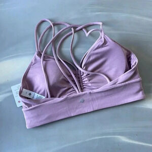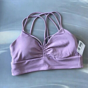 “Connect with your inner dancer in this soft, strappy longline bra that features a ballet-inspired gathered-front detail.