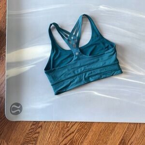 “The look of your favourite strappy bra, without the distractions. Laser-cut straps lie flat, so they won't dig into your back when you're on the mat.