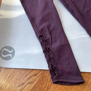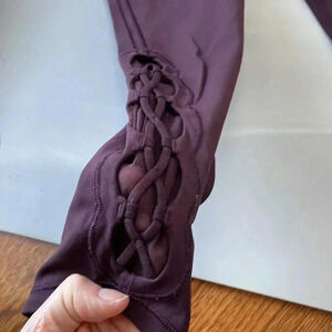“We designed these high-rise crops to help you let off steam when your practice heats up. The lace-up panels are backed with breathable Mesh fabric for a smooth fit and feel.