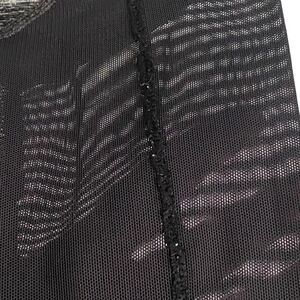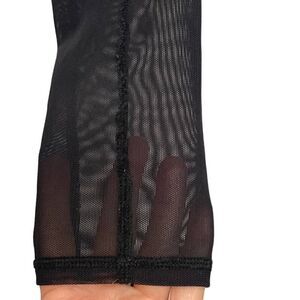 Solid black until mid calf when the heathered band and mesh starts and is carried to the bottom.