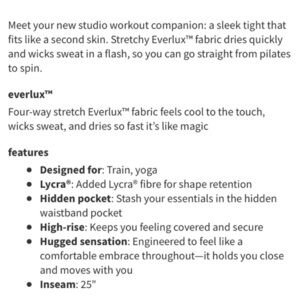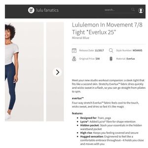 Lululemon In Movement 7/8 Tight Everlux Mineral Blue Size 10